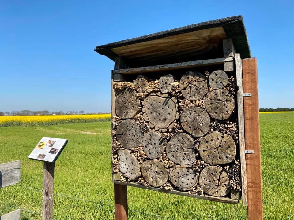 We doen ook veel aan agrarisch natuurbeheer zoals natuurvriendelijke oevers, waterbergingen, bijenkasten, bloeiende akkerranden en we hebben een bijenhotel en hebben meegedaan aan de aanleg van het Klompenpad Errekomsepad, een schelpenpad naar de begraafplaats dat over ons land loopt en we nog jaarlijks grotendeels uit eigen middelen onderhouden ten faveure van de gemeenschap.
